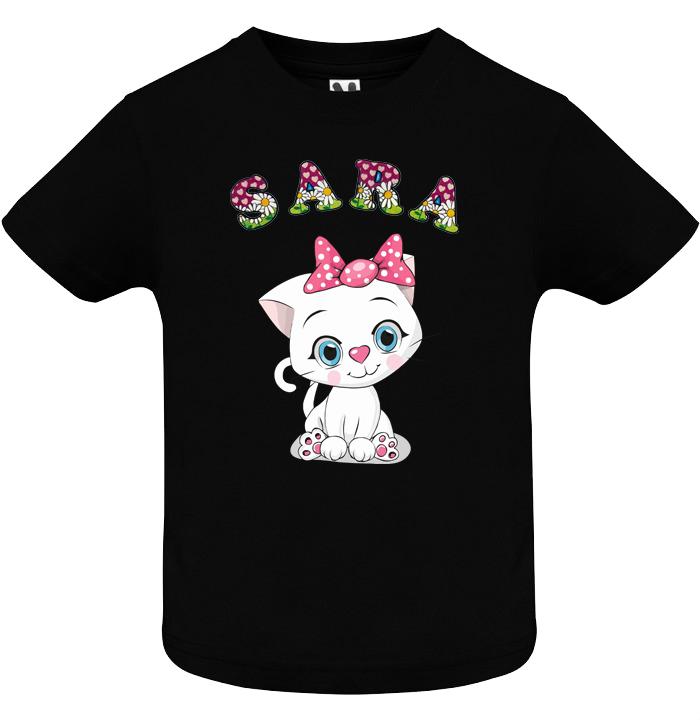 Personalizada con nombre situado en la parte superior delantera, las letras son con estampado de arco iris como se ve en la imagen.